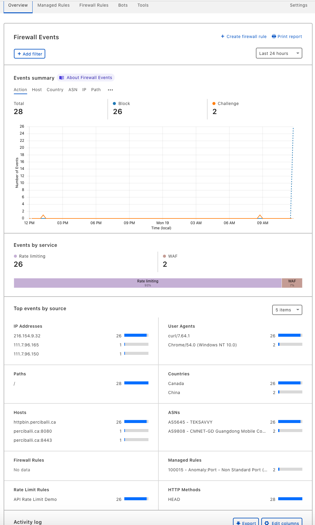 This script will hit the target URL proxied through Cloudflare 20 times. The connections should get blocked with an error 429 after the first 10 requests.