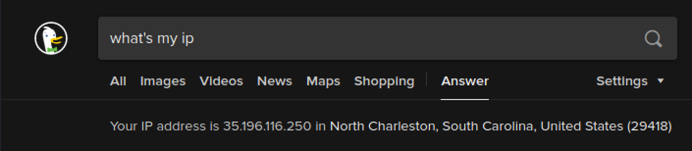Search the web for what's my IP and you will see that it is now the public IP of the Iodine server.