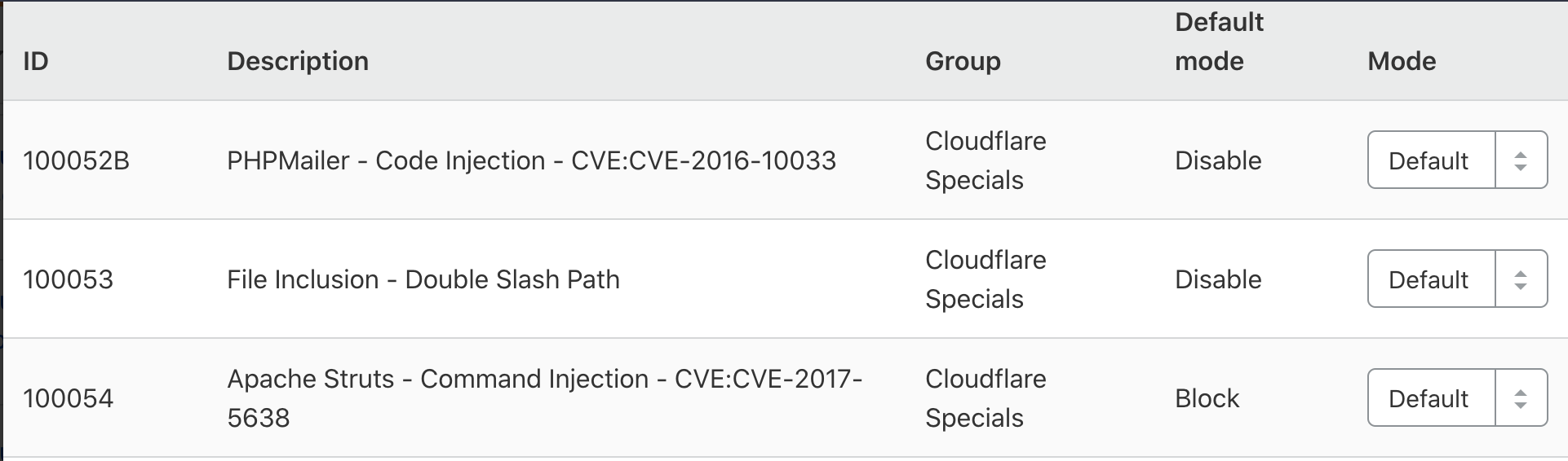 Navigate to Firewall, Managed Rules, Cloudflare Specials.